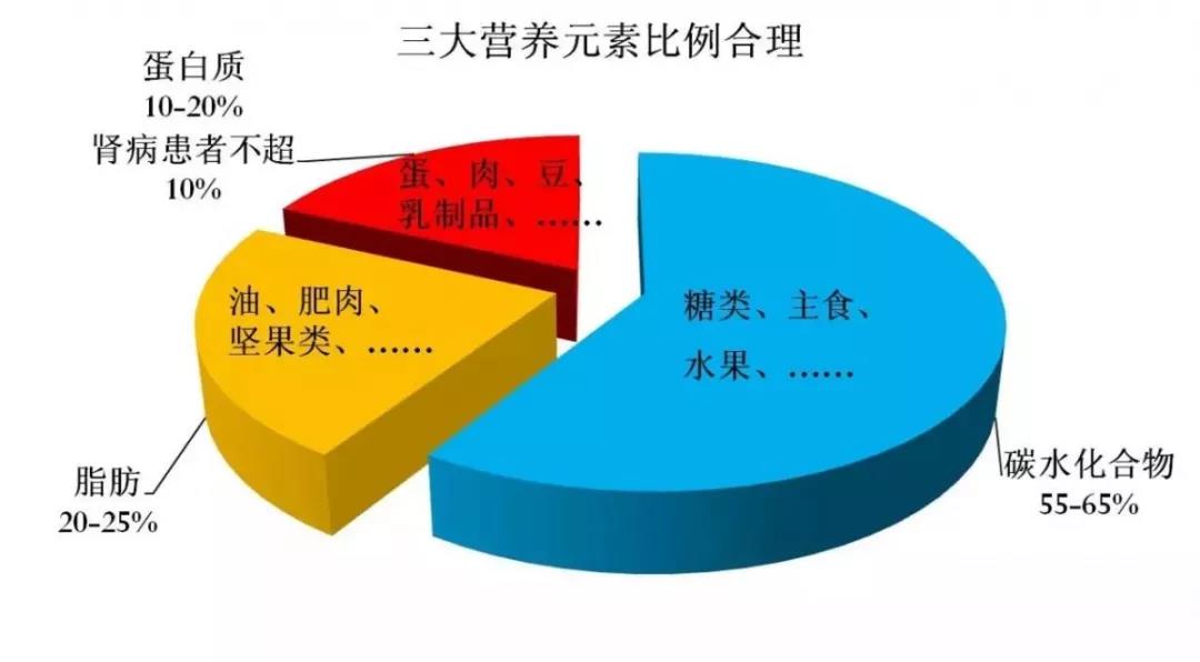 脂肪熱比<30%,全日脂肪包括食物中的脂肪及烹調(diào)油在50克以內(nèi)。碳水化合物熱比55-65%,充足的碳水化合物可防止產(chǎn)生酮體。此外,要注意補充維生素與微量元素。